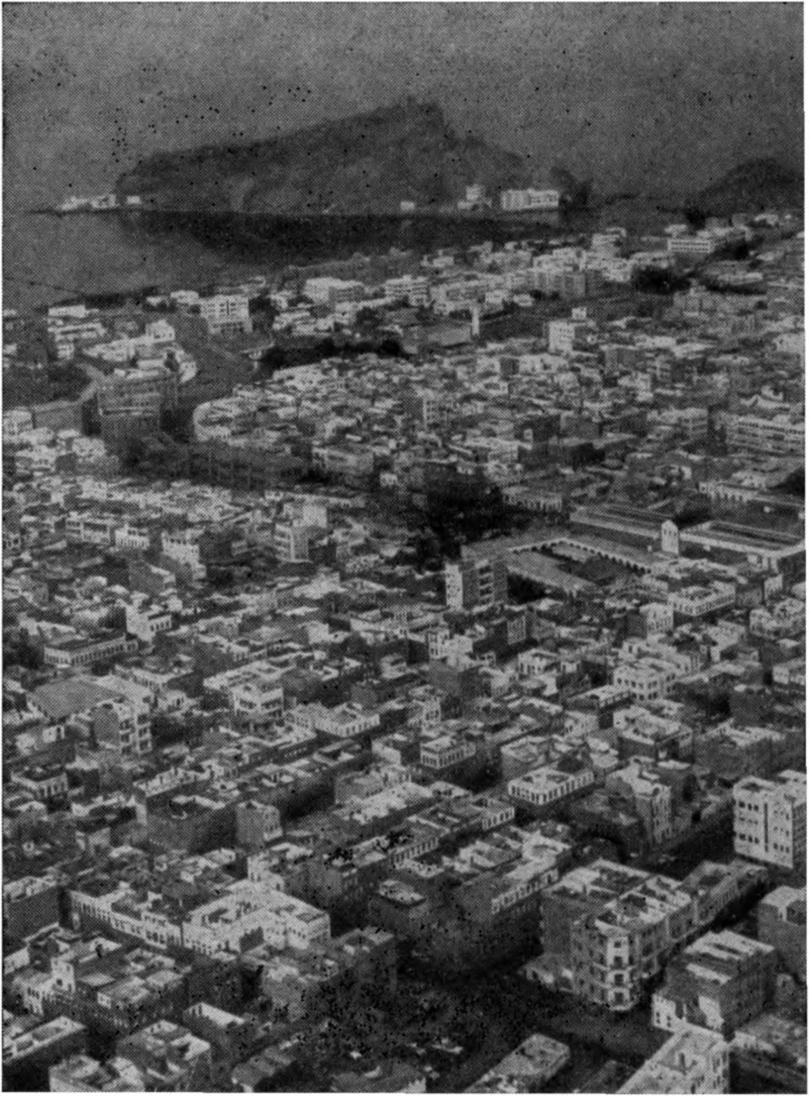 В Адене нет единой застройки, город представляет собой несколько групп кварталов, соединенных шоссейными дорогами, пересекающими пустыри с торговыми' складами и нефтехранилищами. В административном отношении город Аден состоит из районов Кратер’, Тава- хи, Хормаксар и Маала. Пригородами города являются Шейх Осман и Бурейка, где находится крупный нефтеперегонный завод «Бритиш Петролеум К°».